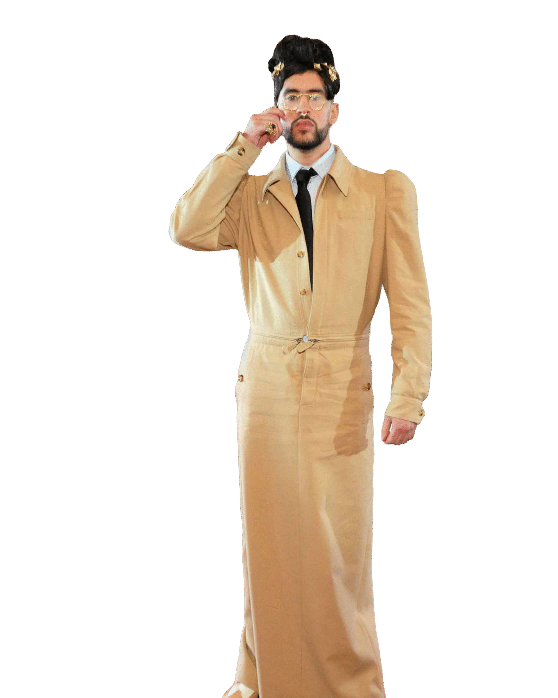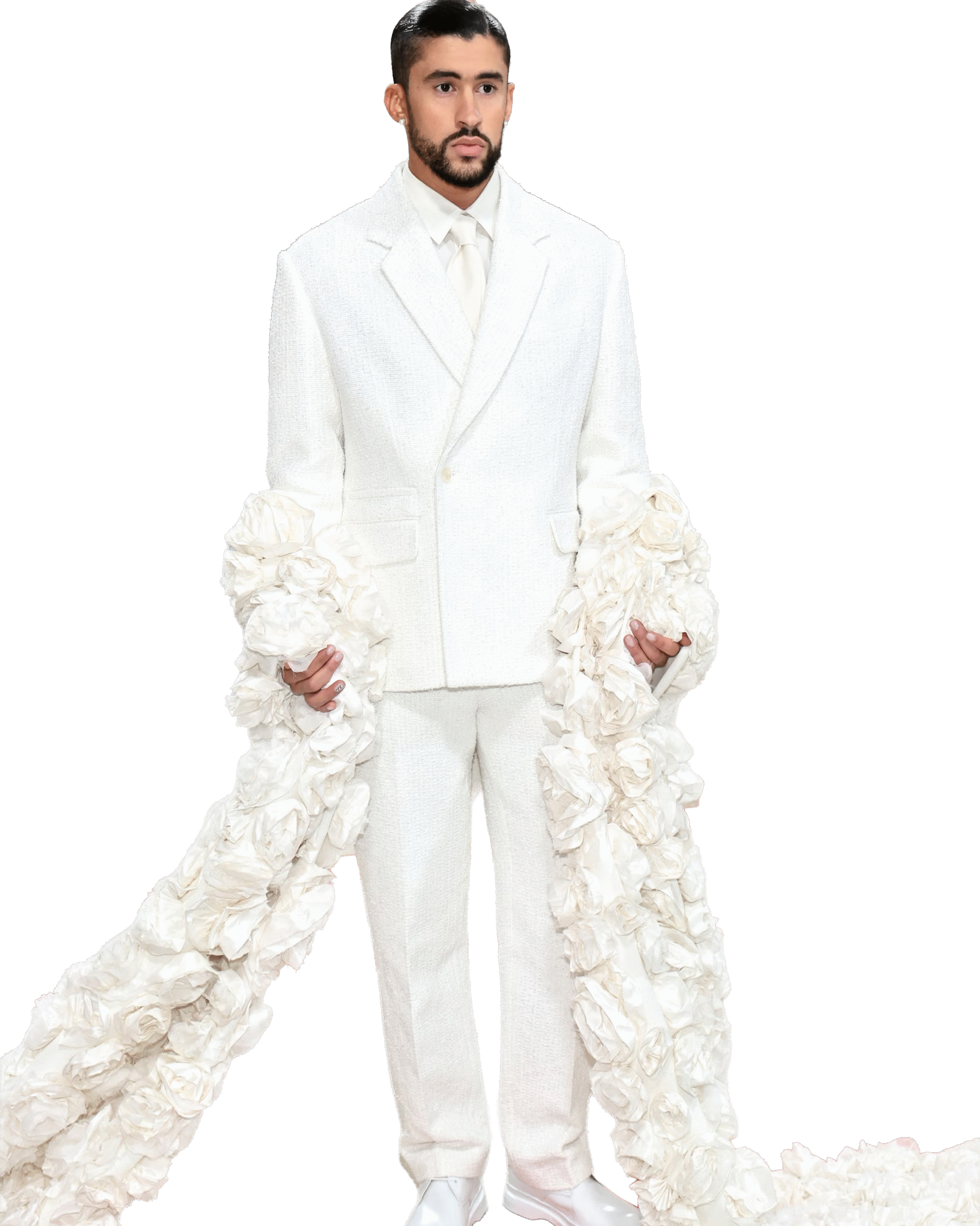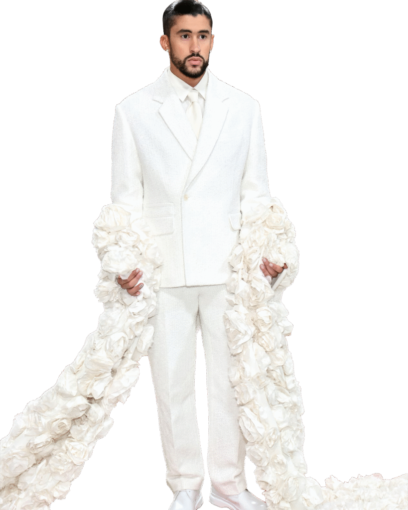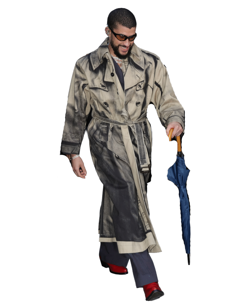 Bad Bunny doesn’t just perform, he arrives. And whether he’s on stage, a red carpet, or walking into a party, his outfits do as much talking as his music.