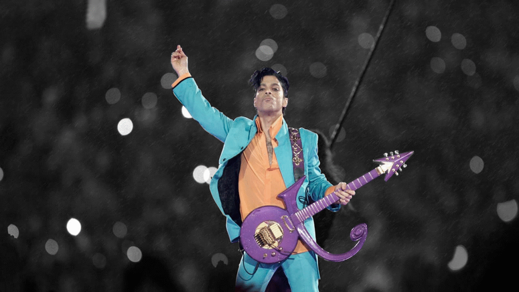 When the sky opened up over Miami during the 41st Super Bowl half-time show, producers panicked, but Prince simply asked if they could “make it rain harder.” Performing in a literal tropical downpour on a slick, neon-lit stage, he delivered what many consider the most raw and talented set in the game’s history. Rather than sticking to his standard greatest hits, Prince surprised the world by blending his own classics like “Let’s Go Crazy” with aggressive rock covers of artists like Foo Fighters and Jimi Hendrix. The night reached its peak during the finale of “Purple Rain,” where Prince shredded a guitar solo through the storm, his silhouette projected onto a massive glowing sheet against the sky. By turning a potential weather disaster into his own personal special effect, he created a transcendent moment that remains unmatched in Super Bowl history.