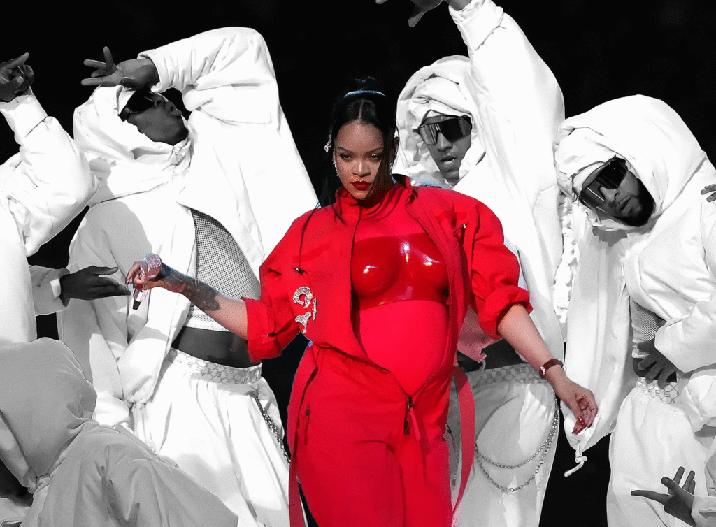 After a seven-year hiatus, Rihanna returned for a Super Bowl performance that prioritized effortless cool over complex choreography. Dressed in head-to-toe red and suspended on futuristic floating platforms, she shocked fans by revealing her pregnancy before delivering a variety of songs spanning her whole career. Her performance was a bold fusion of performance art and personal symbolism, using the world’s biggest stage to celebrate motherhood on her own terms. By commanding the stage alone without a single guest performer, she proved that her presence alone could captivate a global audience, and curated an iconic performance which celebrated motherhood, business, and self-agency.